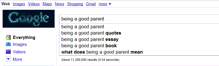Google Instant for "Being a good parent" and it looks like most parents have no clue what it takes to be a good parent. Sad, isn't it?