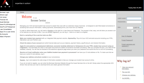 So you can imagine my surprise when 2 weeks ago, I received a letter from Chase saying my loan has been sold to you won’t believe it, but ACS. Can you believe it? So of course I am worried and scared that something bad is about to happen.